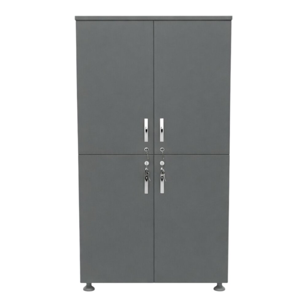 Gövde 18 mm melamin yonga levhadan mamüldür. Üst taç 28 mm ve kapaklar 18 mm yonga levha üzeri 0.6 mm laminat kaplıdır. Üst tabla ve kapakların tüm kenarları 2 mm gövde ve sabit raflar 0.40 mm pvc kaplıdır. 4 adet alüminyum askı borusu mevcuttur. 4 adet metal kulp, 4 adet kilit, metal taş mentese kullanılmıştır. Dolap demonte üretilip minifiks bağlantı elamanları ile monte edilmektedir. Sert plastik vazo ayaklıdır. Raflar 18 mm melamin yonga levhadan mamüldür, kenarları 0.40 mm PVC bantlıdır. |