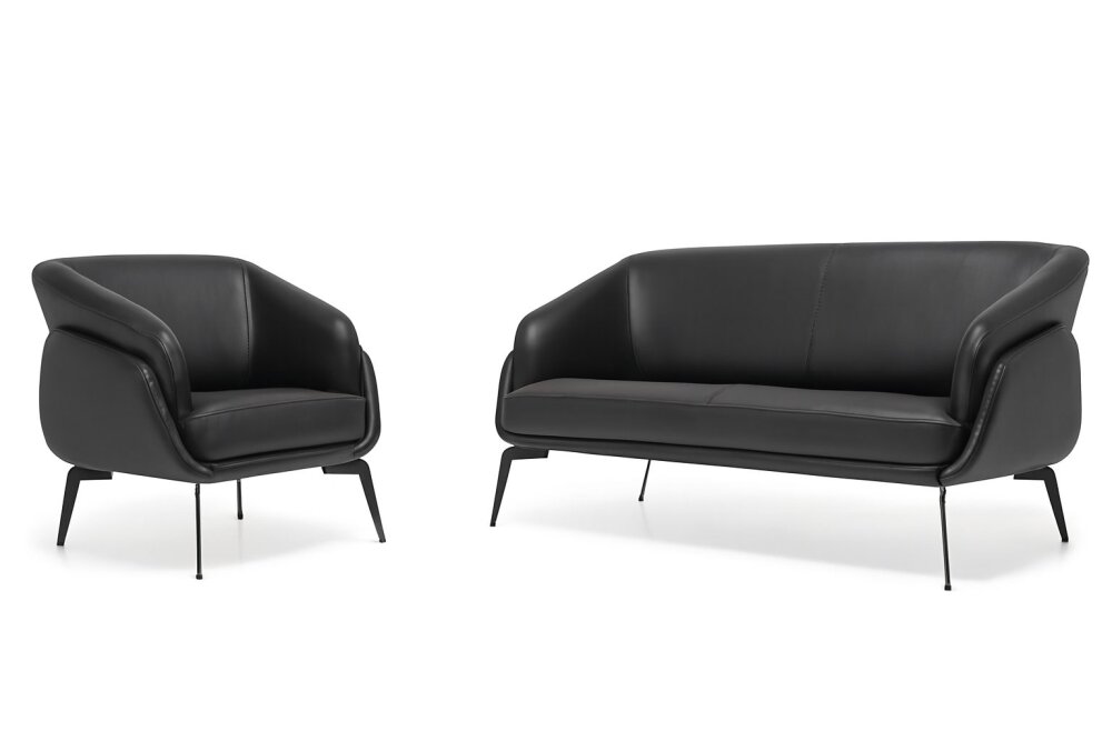 Bu şık ve çağdaş kanepe ve koltuk takımıyla çalışma alanınızı yükseltin. Minimalist ama şık bir estetikle tasarlanan takım, koyu kumaş yastıklar ve kontrast açık yan panellerin çarpıcı bir kombinasyonunu sunarak her türlü modern iç mekana kusursuz bir şekilde uyum sağlar. Yumuşak, destekleyici yastıklama, konfor ve dayanıklılık arasında mükemmel bir denge sağlarken, ince metal ayaklar ona hafif ve havadar bir görünüm kazandırır.