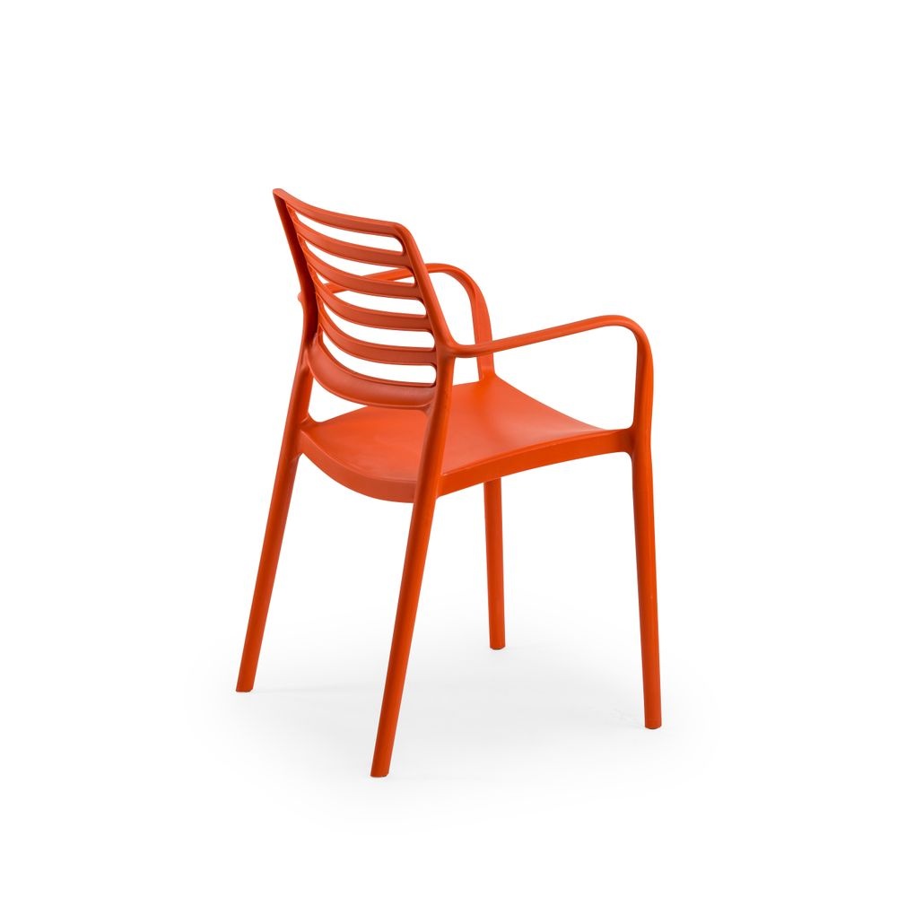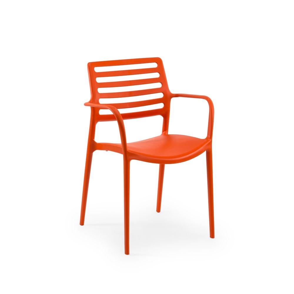 Monoblok plastik istiflenebilir kolçaksız sandalye. Tüm yüzey yüksek aşınma dayanımlı mat ve pürüzlü.