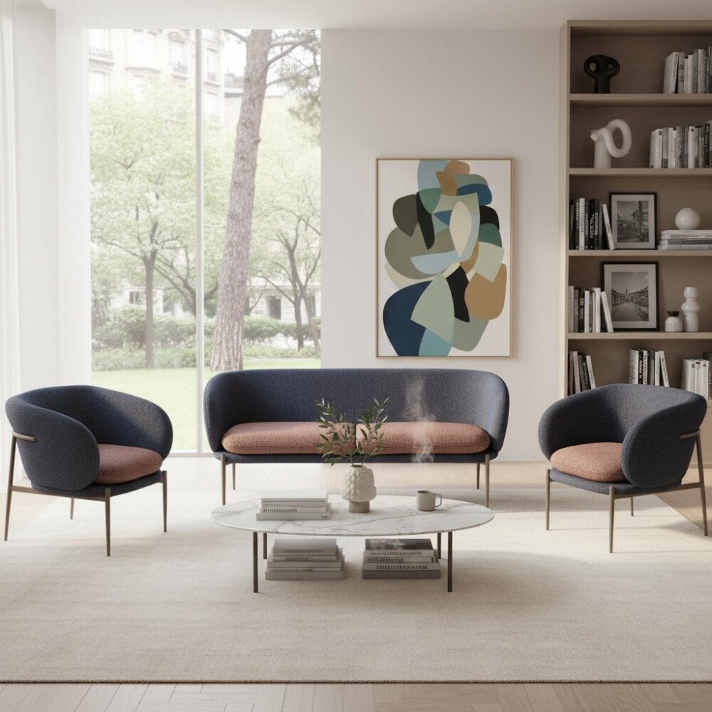 Bu şık kanepe ve koltuk takımıyla modern lüksü keşfedin. Yumuşak, yuvarlak bir tasarıma sahip olan takım, peluş çift tonlu kumaş yastıklarıyla rahat bir kucaklama sunuyor. Petra’nın renk kombinasyonu, çeşitli dekor stillerini zahmetsizce tamamlayan davetkar ve sofistike bir görünüm yaratıyor. İnce ama güçlü metal ayaklarla desteklenen bu set, alanı boğmadan çağdaş bir dokunuş katar. Yumuşak kıvrımları ve rahat oturma alanı, onu ofisiniz veya profesyonel ortamlarınız için ideal hale getirir. Bu göz alıcı setle form ve işlevin mükemmel karışımının tadını çıkarın.