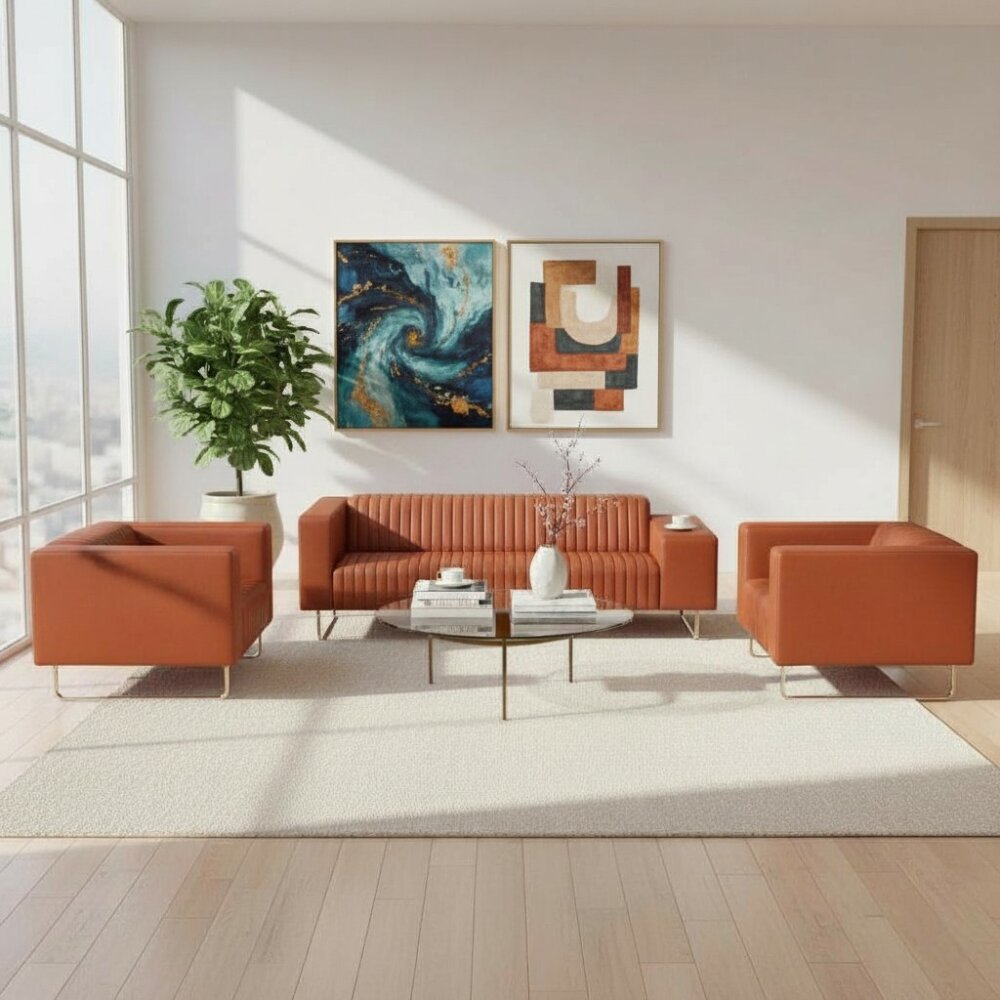 Tokyo Oturma Grubu Takımı, keskin hatların kullanıldığı estetik bir üründür. Tekli ve üçlü koltuk formları ile çalışma alanında her ihtiyaca yönelik tasarlanmıştır. İskeleti fırınlanmış kayın ağacından yapılmış olup, kaliteli elastik kolonlarla beslenmiştir. Dökme sünger yapısıyla rahat bir oturum sağlar. Deri ve krom detayların bir arada sunulduğu bu ürün, çalışma alanınızda keyifli bir oturma alanı oluşturur.